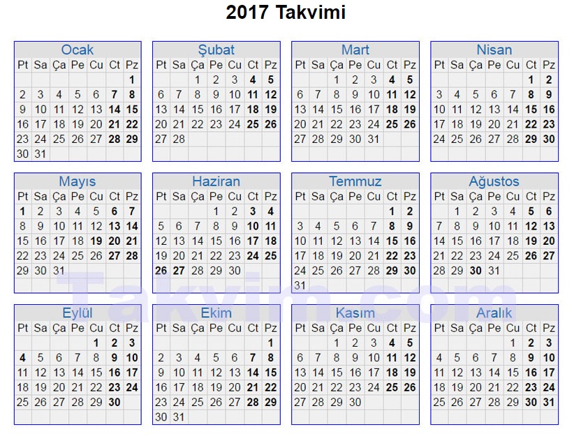 Resmi tatillerin koyu renklerle işaretlendiği takvimleri plan yaparken daha kullanışlı buluyorum. Kaynak takvim.com