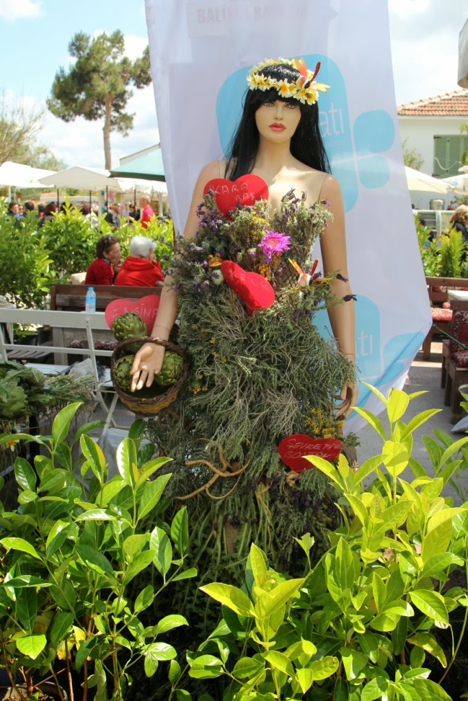 Alaçatı Ot festivalinde otlar ile giydirilmiş manken