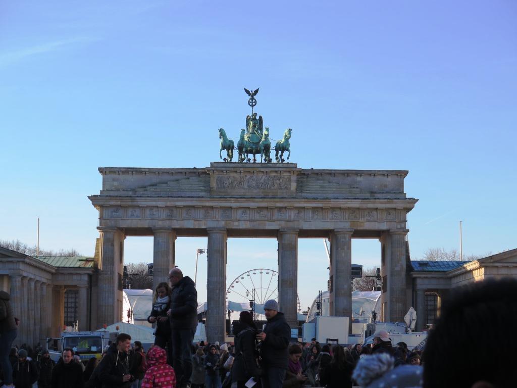 Unter der Linden’in sonuna geldiğinizde ise karşınızda Berlin’in en önemli simge yapısı Brandenburger Tor çıkıyor. Brandenburg Kapısı‘nın önü feci bir turist kalabalığı. Yılbaşı eğlenceleri de burada yapılıyor.