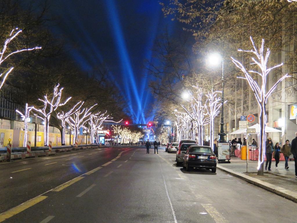 Potsdamerplatz’a giderken böyle süper ışıklı bir cadde bulduk