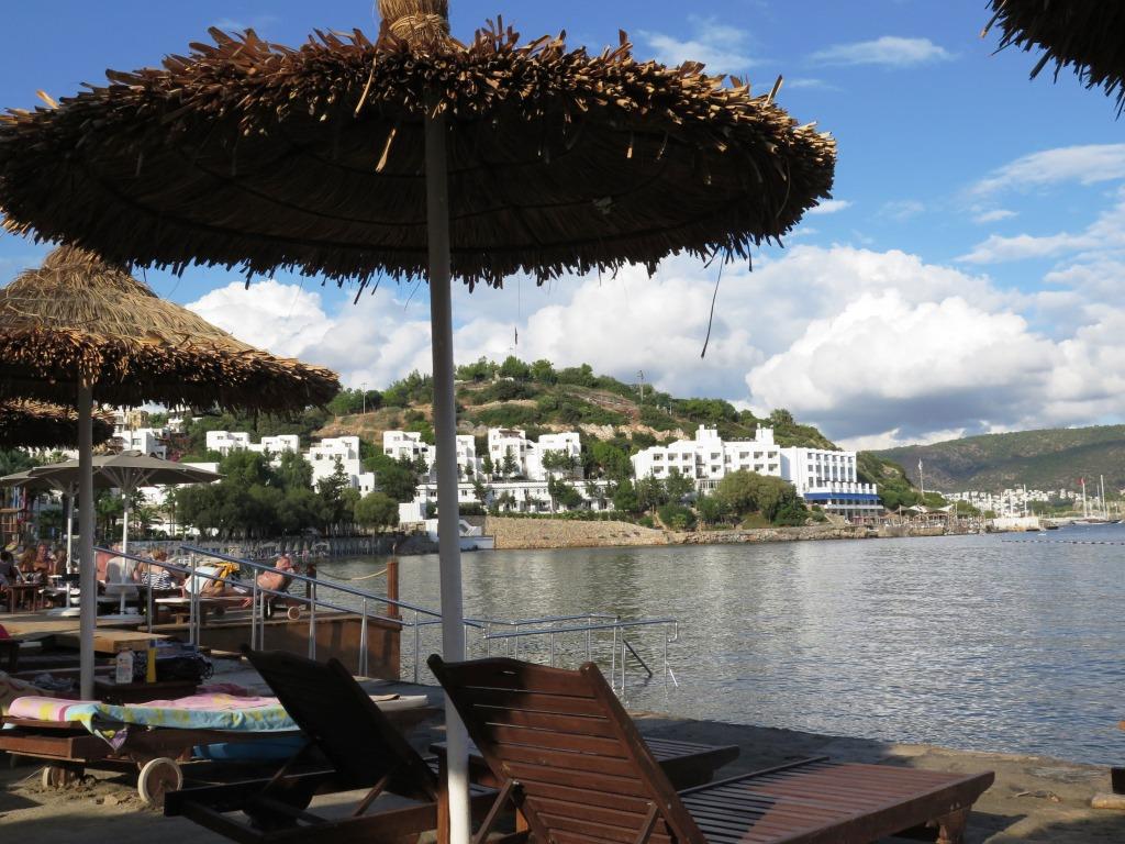 Bodrum’da Zeki Müren Temalı Bir Tatil10 Şubat 20168 YorumKategori : Bodrum , Yurt içi Seyahatleri39 Ayağımın Tozuyla geleneğine aykırı bir tavırla eylül 2015’de yaptığımız tatili ancak yazıyorum. Bu bir otel tatili, o yüzden yazıp yazmamak konusunda kararsızdım. Ama otel tatiline ilgi duyan birçok okuyucumun da olabileceğini düşünerek yazmaya karar verdim. Üstelik benim bu hatıram da blogda yerini almış olur.2015 kurban bayramı eylül ayına denk geliyordu ve 4,5 gün tatil imkanı sunuyordu. Nur topu gibi bir yurt dışı tatili yapılabilecekken ben 30 haftalık hamile olduğum için, o sıralar yoğun çalışıp sırt ağrıları çektiğim için, 3 hafta sonra da Amerika’ya gideceğim için fazla uzaklara gitmek istemedim.Burnumuzun dibindeki Bodrum’a nedense çok sık gitmediğimizi farkedip rotayı oraya kaydırdım. Fakat eylülde, üstelik tatil zamanı Bodrum’un çok kalabalık olacağını düşündüm. Karnım burnumdayken restoran ve park yeri arayışları gözümde büyüdü. O yüzden her şey dahil bir otele kapağı atıp arada gezmeye dışarı gitmeye yönelik bir plan yaptım. Tabi son ana kadar “acaba Prag’a mı gitseydik” sorusu aklımdan çıkmadı.Kurban Bayramında bizi ağırlayan talihli şehir Bodrum oldu!Araştırmalarım sonucu da Voyage Bodrum Otel‘de karar kıldım. Sebepleri:1- Voyage grubunun Bodrum’da birkaç oteli var (Voyage Türkbükü, Voyage Torba gibi), ama Voyage Bodrum oteli sadece 16 yaş üstü müşterileri kabul ediyor. Bundan sonra bolca maruz kalacağımız çocuk gürültüsünden uzak tatil yapma fikri hoşuma gitti.2- Otelin konumu tam istediğim gibi bir tatil yapmama olanak tanıyordu. Bardakçı Koyu’nda Bodrum Kalesi’ne nazır bu otelin hemen yanından Bodrum merkeze “tekne taksiler” kalkıyordu. Kişi başı 6 lira vererek (tek yön) bu hizmetten faydalanabiliyor, arabamızı oynatmadan Bodrum merkeze gidip, gezip, otele geri gelebiliyorduk.3- Otel, akşamları canlı müzik eşliğinde bir eğlence sunuyordu. Saçma sapan animasyonlar veya disko müzikleri en son ihtiyacım olan şeydi.Rezervasyonu ETS tur üzerinden yapmak en avantajlısıymış. Biz de öyle yaptık. Deniz manzaralı odamızı ayırtıp, “inşallah sıkılmayız” diyerek tatili beklemeye koyulduk.Diğer Bodrum otelleri için: https://www.neredekal.com/bodrum-otelleri/Voyage bodrum torba için https://www.neredekal.com/voyage-torba-hotel/Ve 23 eylül 2015’de, Bodrum’da meydana gelen gelmiş geçmiş en büyük sel felaketinin hemen ertesi gününde Bodrum’a ulaştık. Söke’den yolumuz çok kısaydı, yine de zevk olsun diye Pınarcık köyünde mola verdik. Buranın raconu “odun ateşinde çay” eşliğinde gözleme yemek.Bodrum’a giderken mola verebileceğiniz bir çok güzel nokta var. Benim blogda bahsettiklerimden örnek vermek gerekirse:Söke’de çöpşiş yiyebilirsiniz mesela. Tık tık.Söke’yi biraz geçince Gelebeç Butik Kafe‘de ova manzaralı bir mola verebilir, daha da ilerisinde Doğanbey köyünde Dilek Yarım Adası’nın havasını soluyabilirsiniz. O da olmadı, Bafa gölü kıyısında kahvaltı edip göl kenarındaki Kapıkırı köyünü ziyaret edebilirsiniz.Voyage Bodrum Otel hakkındaki yorumlarıma geçelim:Otelin konumu gayet iyiydi, Bodrum merkeze ulaşımı çok kolay.Voyage Bodrum otelin bulunduğu Bardakçı KoyuAslında bu tür tatilleri kişileri yeni yerler görmekten alıkoyduğu için hiç sevmiyorum. Ama geldik bir kere, usülüne uyup yan gelip yatacağız!Hizmet kalitesi yüksek bir tesisti. Müşteri memnuniyeti ön planda.Otelin çeşitli yerlerinde saate özel ikramlar veriliyordu, yiyecek ve içecekler çok boldu. Tabii bu durumun getirdiği dezavantaj olarak da herkes gereğinden fazla yemek yiyor, yemek israfı yapılıyordu.Otelin restoranından manzaraBense formuna dikkat eden bir hamile olarak adeta otele kar ettirmek için orada bulunuyordum. “Ultra her şey dahil” otele para ödemiş klasik bir Türk gibi yemek ve içeceğe abanıp, alkolü sonuna kadar tüketen bir müşteri olamadım bu sefer… İçeceksiz geçen her dakika boşa giden para demekse, evet param boşa gitmiş olabilir.Gurme bir yanım yok ama ben yediğim kadarıyla yemekleri beğendim.Bir akşam yemeğimiz için ala carte restorandan yer ayırttık. Orada akordeon eşliğinde canlı müzik vardı ve çok hoş bir atmosferde yemek yemiş olduk.Akşamları canlı müzik olması tam bana göreydi. Eşlik edebileceğimiz yerli-yabancı şarkılarla eğlendik, unuttuğumuz bazı şarkıları hatırladık, Zeki Müren’i bol bol andık. Bir gece Şehnaz Sam, bir gece Ata sahne aldı. Sinan Erkoç da haftanın belli bir günü otelde konser veriyordu.Gündüzleri sahilde şezlonglarda uzandık, denize girdik, kitap okuduk. Fonda yine güzel müzikler çalıyordu.Şezlongumdan manzaraBardakçı koyunda deniz fena değildi, daha iyi olmasını umuyordum. Belki de fırtına ve sel sebebiyle bizim orada olduğumuz günler süper değildi. Yine de girdik, eğlendik. Kumsalı çok geniş değildi, ama Bodrum’da bu durum böyle sanırım. Denize kumsaldan veya iskeleden girebiliyordunuz. Böyle bir tatilin olmazsa olmazı bence kitap. Güzel bir kitabım olmasaydı bu tatil benim için sıkıcı geçebilirdi ve işte o zaman param boşa gitmiş gibi hissedebilirdim.Odalar aşırı lüks olmamakla birlikte rahatlıkla 4-5 gün sıkılmadan kalabileceğiniz konfora sahip. Bizim odamızın denize bakan kocaman bir balkonu vardı.Çocuk gürültüsü olmadığından mı bilmiyorum, çok sessiz ve huzurlu bir atmosferdi, otelden çok memnun kaldık. Belki ileriki yıllarda çoluk çocukla beraber yine böyle bir tatil yapma ihtiyacı duyarsam Voyage Torba veya Türkbükü otellerini tercih edebilirim.Huzurdan bir kareBodrum tatilimizin nasıl oldu da Zeki Müren temalı bir tatile dönüştüğünü anlatayım şimdi de:Biz Bodrum’a ulaştığımızda (arefe günü) bir g
