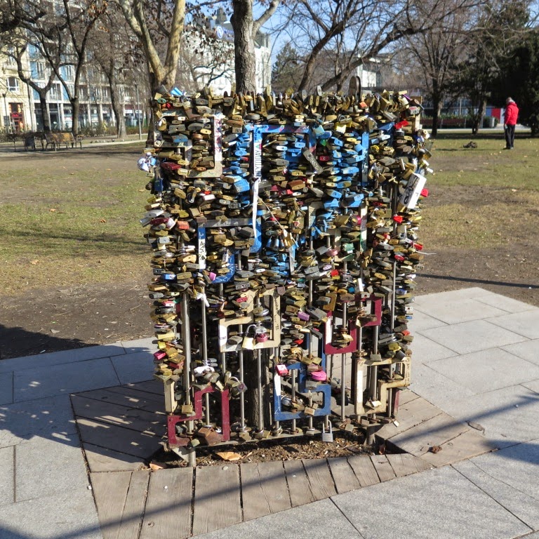 Budapeşte'nin köprüleri eski olduğu için kilitleri taşımayacağından bir ağacın etrafını saran demirlere kilitlemişler aşkları