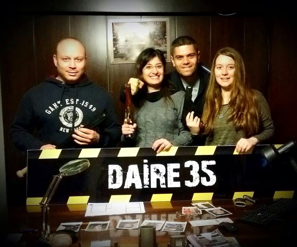 Daire 35 kaçış oyununu arkadaşlarımız Sayıl ve Gizem'le oynadık. Çıkışta çekildiğimiz fotoğrafı çok sevdim ben.