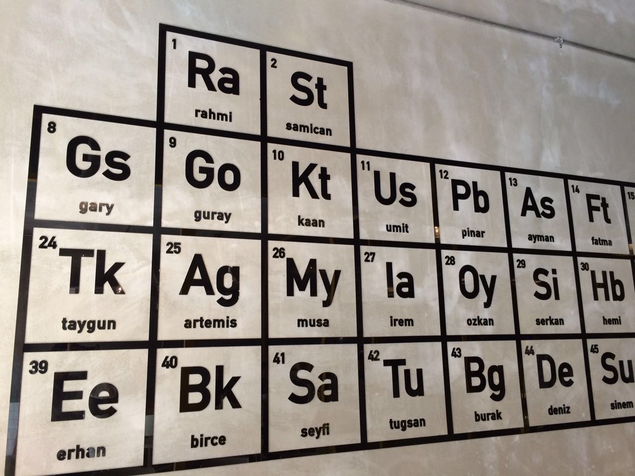 Kafenin duvarında periyodik cetvel temalı bir dekor