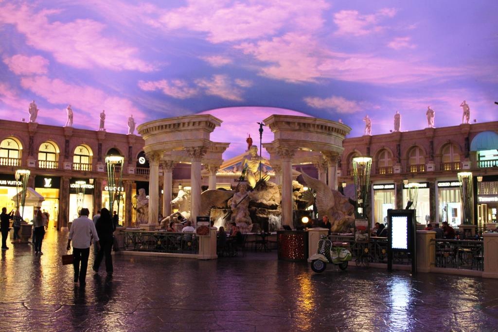 Forum Shops'da tavan gökyüzü şeklinde dizayn edilmiş