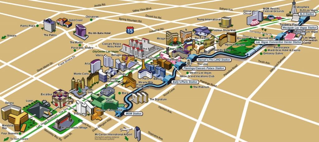 Las Vegas'ta Strip caddesinin kendisinden ziyade cadde boyunca dizilmiş otellerin içlerini geziyorsunuz. Hatta bazı oteller arasında köprüler veya raylı sistemler var, sokağa çıkmadan bir otelden diğerine geçebiliyorsunuz. Birçok restoran ve kafe zaten otellerin içinde. Otellere girer girmez sizi kumarhaneler karşılıyor. Lobiye ulaşana kadar bir sürü slot makinesi ve kumar masası, sonra da alışveriş mağazaları geçiyorsunuz. Verilen mesaj belli: "Derhal para harca!"