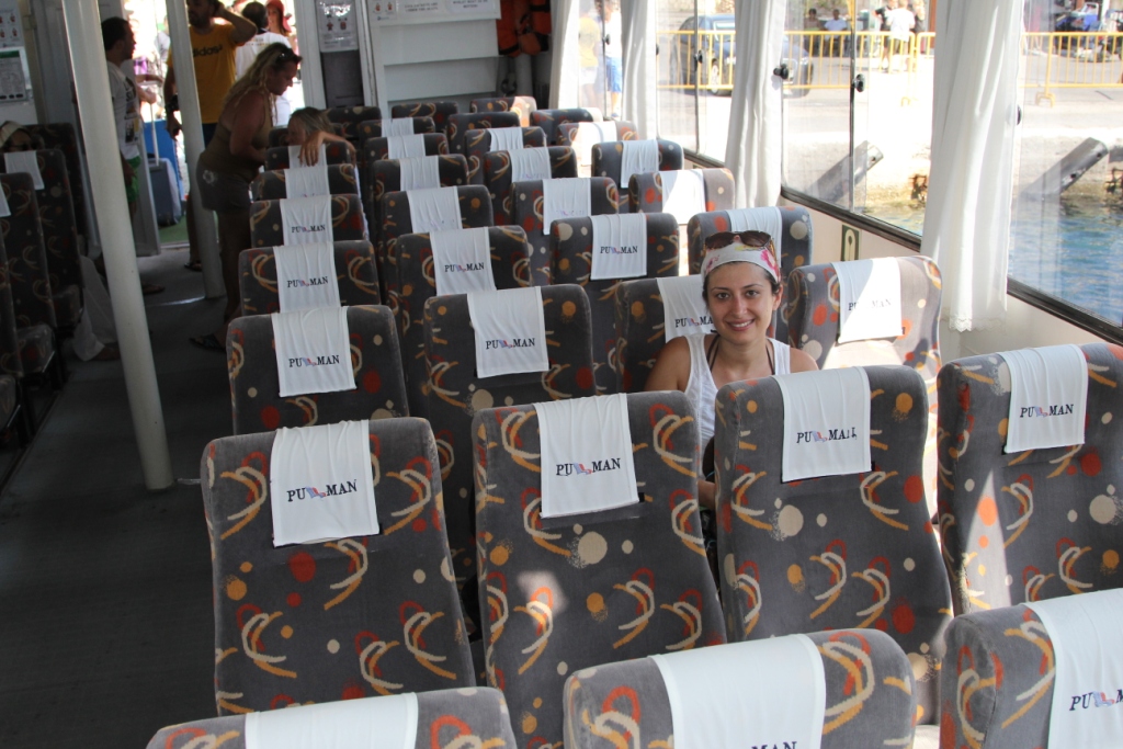 Kaş'tan feribotlar kalkıyor Meis'e. Meis Express adlı gemi ile yolculuk 20 dakika sürüyor. Sabah 10'da kalkıyor gemi, dönüşümüz ise akşamüstü 4'te. Cuma günleri gece turu yapılıyormuş, sabah 10'da gidip akşam daha geç dönebiliyormuşsunuz.