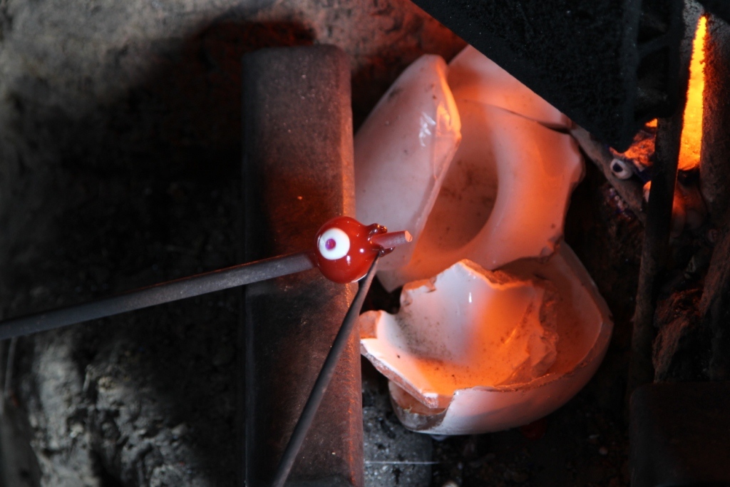 Boncuk atölyeleri  can çekişirken turizm imdatlarına yetişmiş. Kalan 4-5 atölyede ustalar 1200 derece ateşin karşısında devamlı katarakt oluşan gözlerine rağmen, çin malı plastik boncuklara inat, yazın 55 derecelere ulaşan ortam sıcaklığında boncuk üretmeye devam ediyorlar.