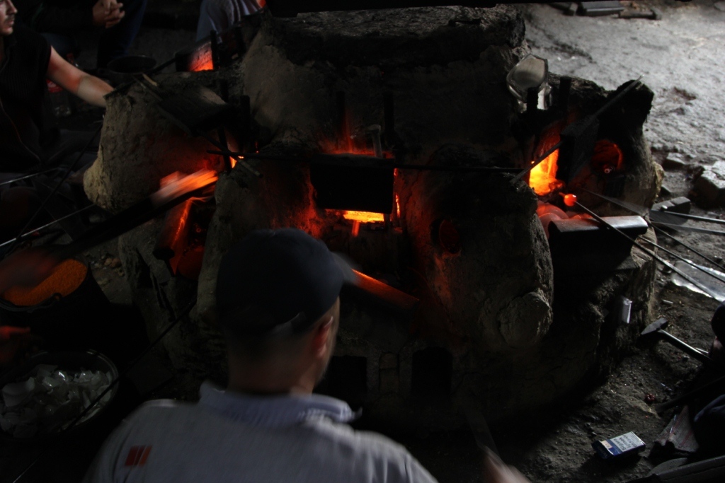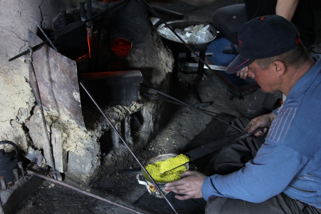 Kovukta bekletilen boncuklar biraz daha soğumaları için toplanıp dışarı konuluyor