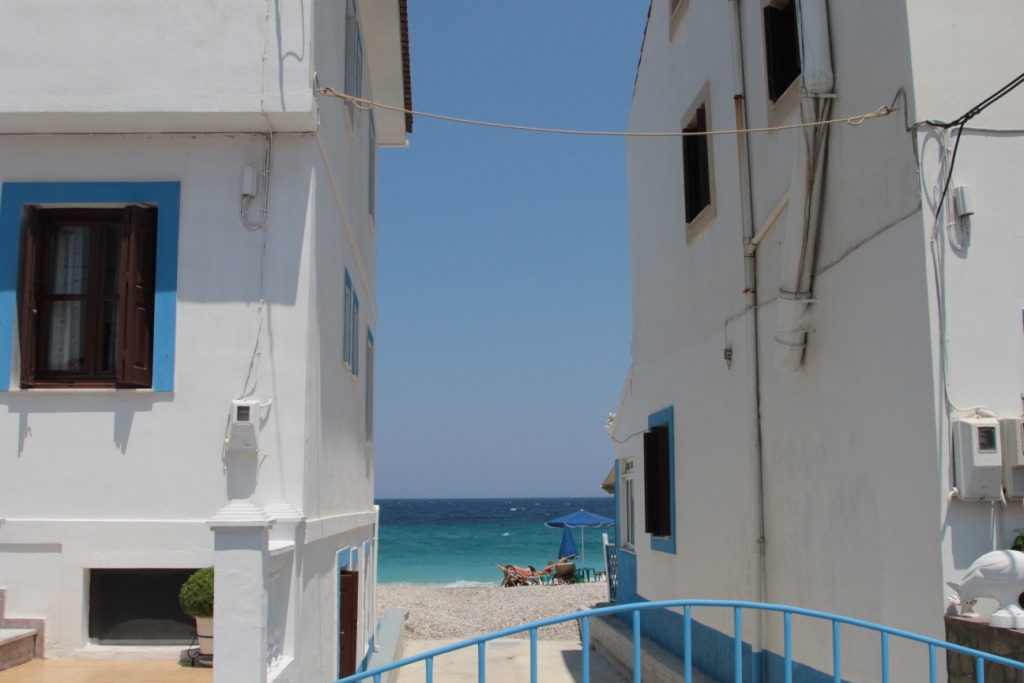 Kokkari'ye gidip denize girmeye yeltendik, ama çok rüzgarlıydı. Kokkari'yi geçince 3 önemli plaj varmış. Lemonakia, Tsamadu ve Tsambu. Biz buralara gidemedik, zaman yetmedi. Buradaki plajlar taşlıymış.
