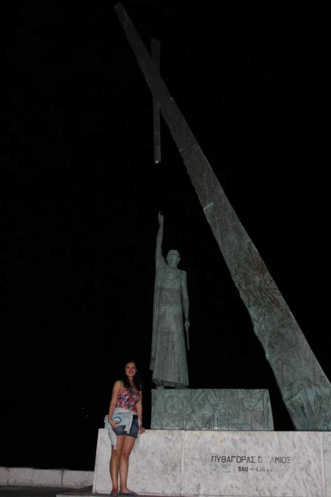 Pythagorion'da Limanın sonunda bir de Pisagor heykeli var. Dik üçgenin iki dik kenarının kareleri toplamının hipotenüsün karesine eşit olduğunu hatırlamadan geçmedik 🙂