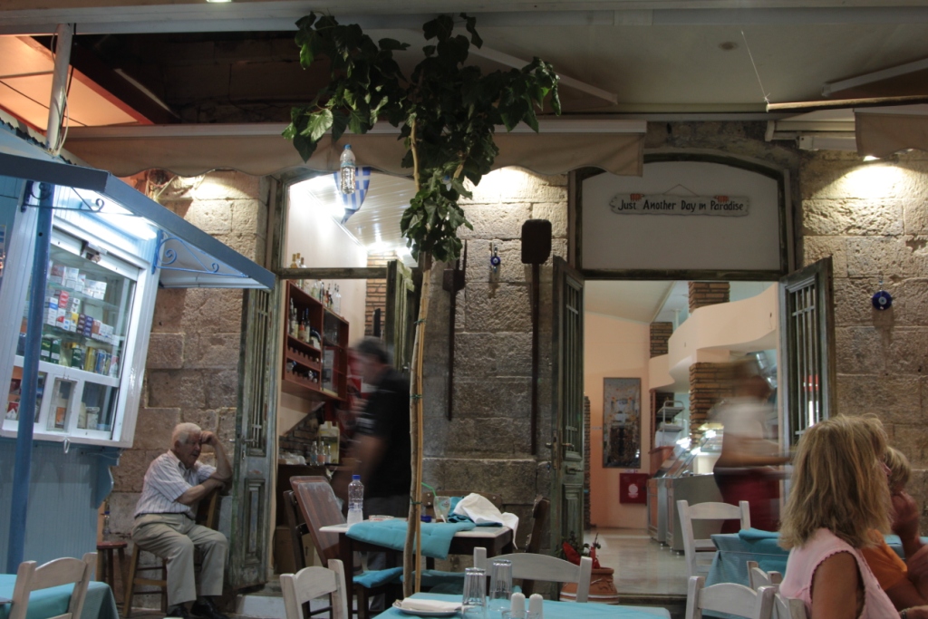 Biz de bunlardan birine kanıp oturduk. 2 kişilik karışık balık tabağı ve salata 23 Euro idi. Salatası muhteşem değildi, Yunanistan genelinde olduğu gibi servis yavaştı.  "Tatildesiniz, acele etmeyin" mantığında bir garson bizi oyalamaya çalışsa da "Daha gezecek çok yerimiz var" mantığında olan ben bir an önce yiyip kalkma derdindeydim. Neyse ki balıklar güzeldi, affettim.