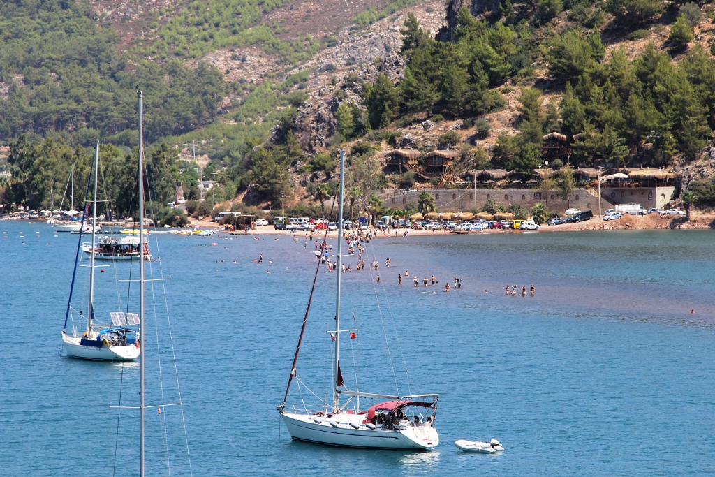 Selimiye Köyü’nde Bir Hafta Sonu27 Ağustos 201531 YorumKategori : Selimiye , Yurt içi Seyahatleri38 Ayağımın tozuyla, bikinimin tuzuyla yazmaya başlıyorum yazıyı…Son zamanlarda Selimiye’ye tatile gitmek çok moda oldu. Kimileri sessizliğe, sakinliğe övgüler yağdırıyor, kimileri de “Selimiye çok bozuldu” sitemleri ile dolduruyor sosyal medya hesaplarını. Herkes denizinin çok güzel olduğu konusunda hemfikir olduğuna göre Selimiye’yi bizim de görme zamanımız gelmiştir! Evveliyatını bilmiyoruz ama karşımıza bozulmuş bir yer mi çıkacak merak içindeyiz. Ne görürsek bozulmuş demeliyiz bilmeden yola çıkıyoruz…Peki neresi bu Selimiye? Marmaris’in Bozburun yarımadasında küçük bir köy. Denizin kıyısında, huzurun ortasında.Selimiye’nin haritadaki yeriSelimiye’ye UlaşımSelimiye sakinliğini biraz da ulaşımının zahmetli olmasına borçlu. Uzaklardan gelenler Dalaman havalimanınından inip önce Marmaris’e, sonra Selimiye’ye ulaşıyor.Bizim gibi karayolu ile gelenler ise yine önce Marmaris merkeze geliyor, oradan Datça Bozburun oklarını takip ediyor. Datça yolunda biraz ilerleyip Hisarönü’ne ulaşınca Datça ve Bozburun olarak 2ye ayrılan yoldan Bozburun’u seçiyoruz. Söke’den 3,5 – 4 saat sürdü, İzmir için 1 saat daha ekleyebilirsiniz.Orhaniye’deki Kız Kumu Plajı‘nı görünce hemen bir fotoğraf molası verdik. Buranın özelliği denizin ortasında kızıl kumlardan oluşmuş sığ bir hat. İnsanlar bu plaja denize girmeye gelmiyor, denizin ortasında yürümeye geliyor. Biz bu seferlik yürüyüşe katılamadık, fotoğraf çekmekle yetindik.Denizin ortasından yürüyerek karşı kıyıya geçebildiğiniz Kız Kumu PlajıKız KumuAkla Musa’nın Kızıldeniz’i yardığı hikaye gelse de buranın hikayeleri bambaşka. Hikayeleri diyorum, çünkü her yerde farklı şekillerde anlatılan versiyonları var. Zengin kız – fakir erkek temalı olanından savaş temasına değişiyor hikayeler. Ben buraya hiç birini yazmamayı seçiyorum, merak eden araştırabilir 🙂Kız Kumu’ndan sonra yola devam ediyoruz. Yol biraz virajlı, ama çam ağaçlarının içinden ilerliyor, ara ara denizi görüyoruz. Bazı koylar harika!Yol üzerinde karşılaştığımız güzellikler!Marmaris – Selimiye arası yaklaşık yarım saat sürüyor.Selimiye’de KonaklamaSelimiye’de küçük pansiyonlar hizmet veriyor. Öyle büyük işletmeler, her şey dahil oteller filan yok. O kadar küçük bir yer ki, büyük oteller buraya hiç yakışmaz diye düşünüyorum. Zaten köy halkı da direniyor büyük işletmelere.Selimiye’ye gelen de bu küçük yerlerden butik hizmet almak için geliyor.Selimiye’de butik oteller https://www.neredekal.com/selimiye-otelleri/Marmaris çevresindeki oteller https://www.neredekal.com/marmaris-otelleri/Küçük ve sınırlı konfora sahip bu pansiyonların fiyatları ise çok yüksek! Geceliği 250 tl den başlayan fiyatlar 400’e kadar çıkıyor. Bu pahallılık “Selimiye bozuldu” feryatlarını haklı çıkarıyor olabilir mi? Selimiye denizine tepeden bakan manzaralı oteller ilk başta cazip gibi görünse de bence deniz kenarında bir yerde kalınmalı. Deniz kenarında kahvaltı edilip cup diye suya atlanmalı… Manzaralı otellerden Loca Butik Otel ve Les Terrasses öne çıkıyor.Hangi tesislerin deniz kenarı olduğunu booking.com’dan anlayabiliyorsunuz. Benim deniz kenarında görüp aklımda kalanlar: Beyaz Güvercin, Akkum Gezer Motel, Losta Tatil Evi, Sardunya Pansiyon, Nane Limon Pansiyon, Badem Çiçeği Pansiyon ve daha niceleri…Biz ise Seray Pansiyon by Sandal Beach isimli tesiste kaldık. Yeri Selimiye’nin hemen girişinde, köyün köy olduğu yerde bence. Biz yüksek sezonda gittiğimiz için deniz kenarında bulabildiğim en ucuz yer burasıydı. Ucuz dediğime bakmayın, oda-kahvaltı 90 euroydu. Oda kötü değildi ama 90 euroya çok daha lüks yerlerde kalmışlığım var…Seray Pansiyon hoş ve serin bir bahçe içinde. Selimiye’nin canlı bölümüne 5 dakika yürüme mesafesinde bir yer. Sahipleri çok tatlı ve ilgili insanlardı.Pansiyonumuzun bahçesi denize nazır ve serindi“Hamakta sallanmak” tam bir Selimiye aktivitesiSelimiye’deki yanyana otel ve pansiyonların olduğu bölgede denize kıyıdan giriyorsunuz. Küçük taşlı, dar bir plaj, suyu inanılmaz berrak. Ama her taraf tekne! Teknelerin yanında yüzmek bana bir tuhaf geldi doğrusu.Selimiye’de pansiyonların önü bu şekildeydiSuya yakından bakmak gerekirse…Bizim pansiyonun önünde ise denize iskeleden giriyorsunuz. Suyu popüler bölümdeki kadar berrak görünmese de teknelerin olmaması, ıssız olması, karşıdaki kaleye yüzüp gelme hedefi koyabilmeniz çok hoş.Şu karşı adaya yüzüp gelelim!Selimiye’de Neler Yapılır?Bu sorunun cevabı çok kısa sürecek: Dinlenilir, denize girilir, kitap okunur, dostlarla sohbet edilir, leziz yemekler yenir…Selimiye’de hamakta sallanılır demiştim değil mi?Denizi gerçekten ılık ve temiz. Teknelerle bu kadar içiçe olup da temiz kalabilmesi şaşırtıcı.Sığ bir deniz olduğu için çocuklu tatilciler de çok tercih ediyor Selimiye’yi.Deniz kenarındaki restoranların önünden dar bir yol geçiyor. Bu yolda yürüyüş yapıp sakinliğin keyfini çıkarmak lazım.Yürümek isterseniz…Tekne turu bence mutlaka yapılmalı. Civarda çok güzel ve bakir koylar var çünkü. Araba ile gidilmeyen her yer ne kadar güzel kalmış!Biz cumartesi gündüz Selimiye’de denize girip, pazar gününü tekne turuna ayırdık.Tekne turu için birkaç tekne ile görüştük, ertesi güne çoğu doluydu. Hepsinin benzer hizmet verip aynı güzergahı gittiğini öğrenmiştik zaten. Boş yer bulabildiğimiz Denizbey 1 teknesinden yer ayırttık. Fiyat tüm teknelerde kişi başı 50 lira.Eğer siz kalabalık grup halinde giderseniz normal tekne turu fiyatından biraz fazla verip tekne kapa