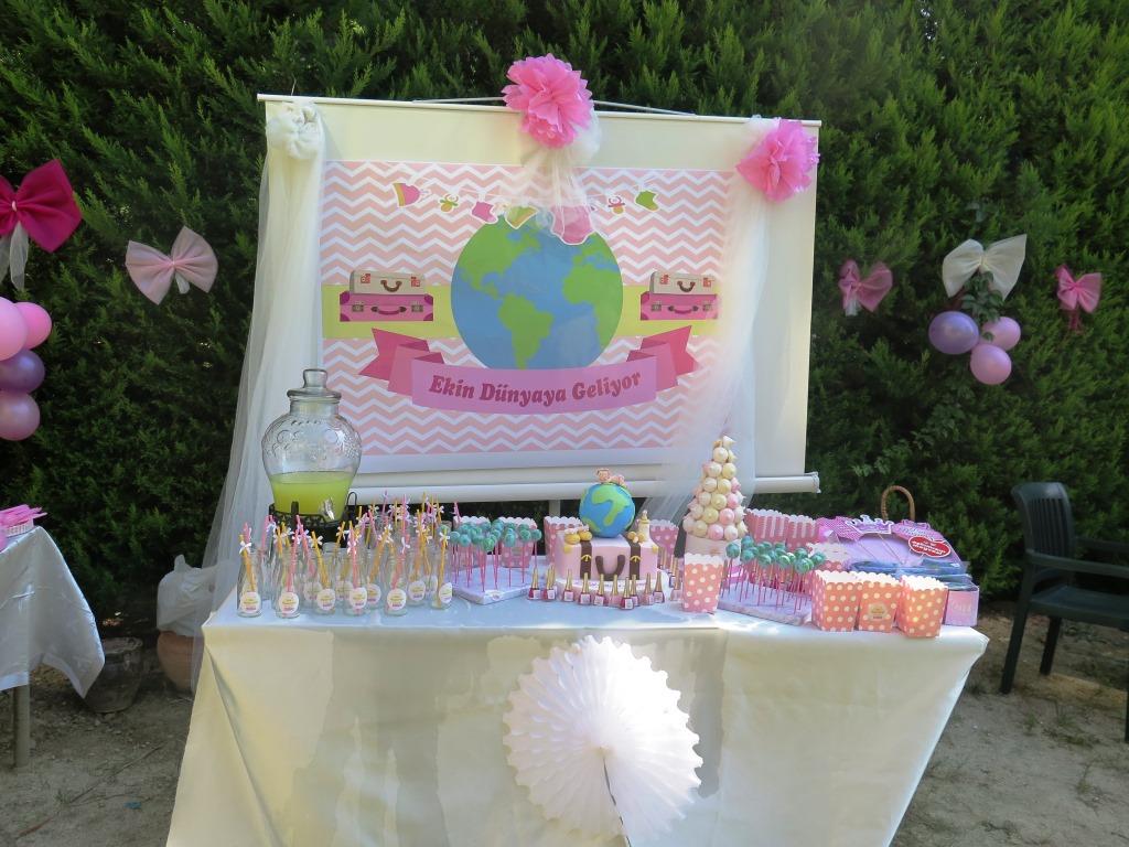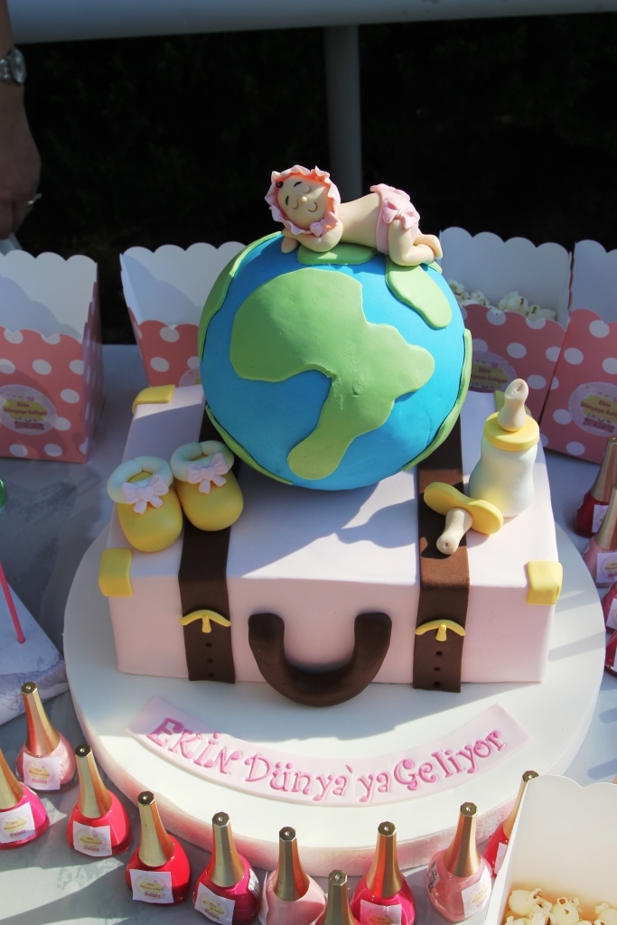 Seyahat Temalı Bebek Geliyor Partisi13 Aralık 20158 YorumKategori : Çocukla Seyahat11 Başlıkta kullanmaktan çekindiğim "baby shower" terimi Türkiye'de son yılların modası. Normalde bir Amerikan adeti olan baby showerı Türkiye'ye Demet Akalın'ın getirdiği iddia edilse de bence yabancı dizilerin etkisi de büyük. (Şahsen ben Friends dizisinden öğrenmiştim)"Baby shower nedir?" diye soracak olursanız, yabancılarda hamile olan kişiye moral vermek için ve bebeğin bazı ihtiyaçlarını gidermek amacıyla düzenlenen bir parti. Yabancılarda partinin asıl hedefi "hediye toplamak" olduğundan ve hamile kişinin "Ey ahali, bana hediye getirin" demesi hoş karşılanmayacağından partinin organizatörlüğünü yakın bir arkadaş veya aileden biri üstleniyor.Türkiye'de ise konsept tam oturmuş değil, sanırım bizde amaç hediye toplamaktan ziyade moral depolamak ve eğlenmek. O yüzden çoğu hamile kendi partisini kendisi organize ediyor.Bir grup insan tarafından da son derece gereksiz görülen bir eğlence olduğunun da farkındayım. Gösteriş meraklılığı olduğunu düşünenler, nazar değeceğine inanlar var. Saygı duyuyoruz! Bebek sağsalim doğacak mı belli olmadan böyle bir parti düzenlemek de kimisinin aklına yatmayabilir.Şahsen ben de bu düşünceleri aklımdan geçirdim ama lohusalık döneminden önce akraba ve arkadaşlarla bir araya gelip eğlenme isteği daha ağır bastı. Yine de geleneksel yaklaşmdan kopamadığım için organizasyonun fotoğraflarını sosyal medyada ve blogda bebeğimi sağlıkla kucağıma almadan paylaşmak istemedim.Tema seyahat olmasaydı blogda paylaşmazdım, merak etmeyin! Ortalık anne bloğuna dönmeyecek, söz! Sadece seyahatsever anne adaylarına fikir vermek ve blogdaki seyahatlerimizde artık Ekin'in de yer alacağını okuyucularıma bildirmek için yazıyorum.Baby shower partimizin teması seyahat, sloganı ise "Ekin dünyaya geliyor".Seyahat temalı baby shower partisiDaha önce yakınımdaki hamilelere bebek geliyor partisi düzenlediğim için benimkinin organizasyonu bana kalmadı. Kardeşim Hale ve annem başta olmak üzere küçük detaylarla partimizi renklendiren aile bireylerime ve arkadaşlarıma sonsuz teşekkürler.Aileler candır!Aileler candır demiş miydim?Ben parti esnasında 32 haftalık hamileydim. Normalde daha geç yapardım ama partiden 2 hafta sonra Amerika'ya uçacaktım ve elimizdeki en uygun tarih 3 ekimdi.Şansımıza o gün Kuşadası'nda hava da süperdi.Güzel hava, güzel dostlar"Ekin Dünyaya geliyor" partisinin detaylarına bakacak olursak:Konsepte uygun ama cicilikten ödün vermeyen posterimiz:Posterimiz, önünde yüzlerce fotoğraf çekilmek için vardıBavulun üzerinde duran dünya küresi ve onun üzerinde uyuyan bebeğimizi görebileceğiniz şeker hamurundan pastamız:Kesmeye kıyamadığımız pastamızÇubuğa takılı şeker hamuru kaplı kek toplarımız: (Cakepop deniliyormuş bunlara)Dünyadan kek toplarımızEsasında bebek odası için yaptırdığım uçan balonlu kapı süsü partimizde dekor olarak kullanıldı.Modellerimiz de Ekin'in halası ve yakışıklı kuzeniVe dünya haritası baskılı deniz toplarımız misafirlere hediye olarak dağıtıldı. Ben bunları Aliexpress'den sipariş ettim.Harita baskılı deniz topuBizim bebek kız olunca parti biraz cici bici oldu ama erkek bebeklere biraz daha ciddi bir seyahat konsepti hazırlanabilir. Pinterest'de çok güzel temalar var zira, bakmanızı öneririm.Cici partimizin birbirinden cici misafirlerinin bir kısmıBu arada hamur işleri ve ortam düzenlemesi İzmir'den MissPastam tarafından yapıldı. Emeklerine sağlık!Bence bebek partilerinin olmazsa olmazı baby shower oyunları! Birbirini çok da tanımayan onca misafirin kaynaşıp eğlenmesini sağlıyor. Kazananlara verilen küçük hediyeler de günün hatırası oluyor.Bu kısmın seyahatle ilgisi olmadığı için kısa kısa yazıp geçiyorum. Oynattığımız oyunlar:1- Herkes makaradan göz kararı bir ip parçası kesiyor. Hamilenin göbek çevresi ölçülüyor ve bu uzunluğa en yakın uzunlukta ipi kesmiş olan kazanıyor.2- Bir fanus pirincin içine minik bir plastik emzik gizledik. Gözler kapalı şekilde emziği en kısa sürede bulan yarışmayı kazanıyor.Gözler kapalı emziği arıyoruz3- Dağıtılan boş kağıtlara 1 dakika içinde en fazla bebek eşyası yazan kişi de bu oyunun galibi. Yeni anneler avantajlı burada.Daha önceki partilerde kavanoz maması alıp aromasını gösteren etiketi saklıyorduk. Herkes mamadan birer kaşık alıp mamanın neli olduğunu tahmin etmeye çalışıyordu. Ama bu oyunu benim partimde oynatmadık, çünkü baya zahmetli oluyor kaşık temini.Bir bebek eşyasının ismini söyleyip misafirlerden ürünün piyasa satış fiyatını tahmin etmelerini istemek de yaygın oynatılan bir oyun.Belki siz hamilelikte kaç kez uçağa bindiğinizi filan soran seyahat temalı bir quiz hazırlayıp en doğru cevapları vereni ödüllendirebilirsiniz.Ekin'i beklerken bu parti sayesinde çok hoş bir gün geçirdim. Bizimle bu keyifli günü paylaşan tüm misafirlerimize teşekkür ediyorum. Çok güzel fotoğraflarımız var ama konudan sapmamak için buraya koymuyorum.Bu yazı ile Ekin'e "hem hayatımıza, hem de Ayağımın Tozuyla'ya hoş geldin" diyorum.Umarım Ekin'in hayatı da öncesinde verdiğimiz parti gibi keyifli ve renkli olur. Temenni ettiğimiz gibi "dünyaya geldiğinden itibaren dünyayı gören ve anlayan" bir birey olarak yetişir.Bu dileğimden de anlayacağınız gibi gezilerimiz devam edecek, bundan böyle tatillerde bebekle yollarda olmayı umuyoruz.Okuyan herkese teşekkür ederim, çiçeği burnunda anneden sevgiler…Bunu paylaş:Twitter üzerinde paylaşmak için tıklayın (Yeni pencerede açılır)Facebook'ta paylaşmak için tıklayın (Yeni pencerede açılır)İlgili Paylaş harita fikirleri , seyahat fikirleri