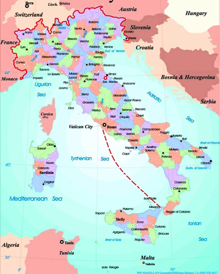 Messina limanı Sicilya'nın 3 limanından biri. Sicilya'nın merkezi Palermo imiş. İtalyanın güneyi daha az gelişmişlik düzeyine sahipmiş ki bunun sebebi tahmin edebileceğimiz üzere "mafya". Bu özerk bölgeye İtalyan hükümeti de çok karışamadığı için her aile kendi menfaatine göre hareket ediyormuş.