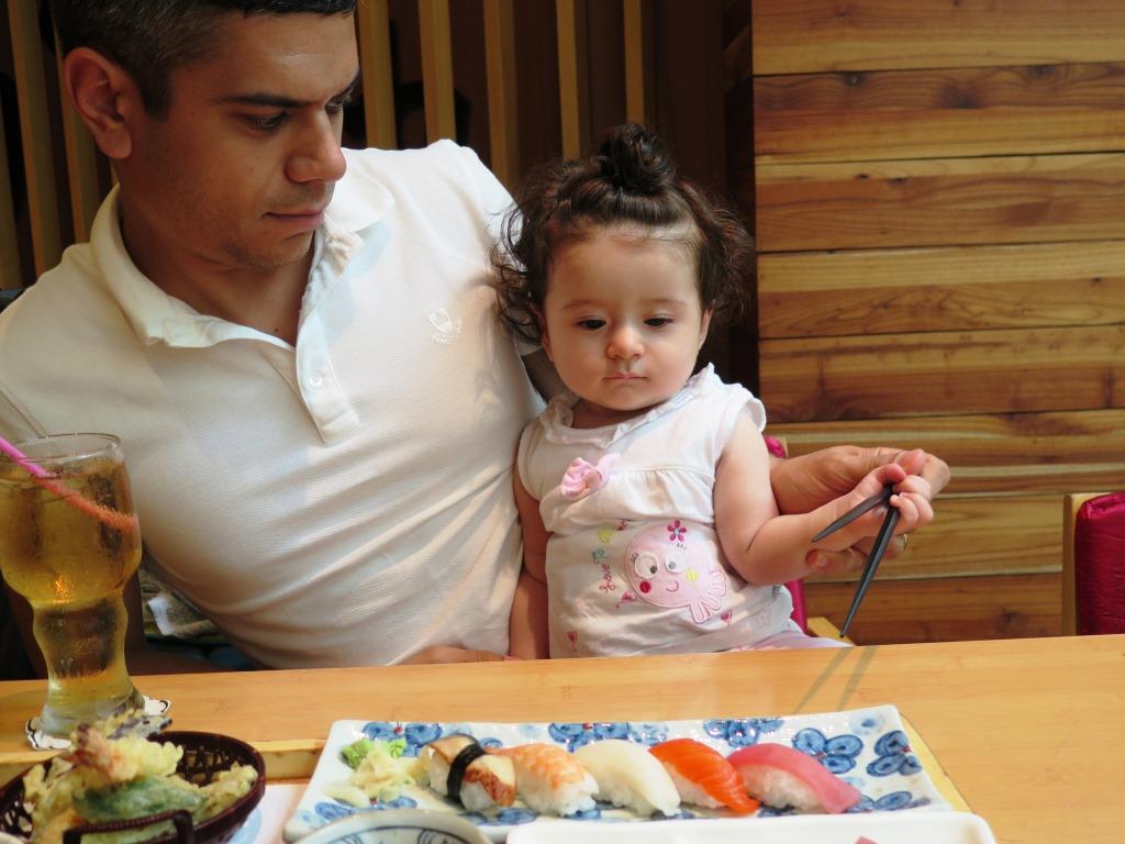 Ekin gezi esnasında 7 aylıktı. Bu tatili de gözönünde bulundurarak ek gıda konusunda pek acele etmemiştim. Oradayken anne sütü ağırlıklı beslendi, günde birkaç kez muz, avokado, mango gibi meyvelerden yedi. Yoğurt, yumurta çorba vs… yemedi. "Cık cık cık" yapan, beni kınayan anneler olabilir ama herkes kendi çocuğuna baksın diyor, mutluluğu yiyecekle ölçmemelerini öneriyorum.