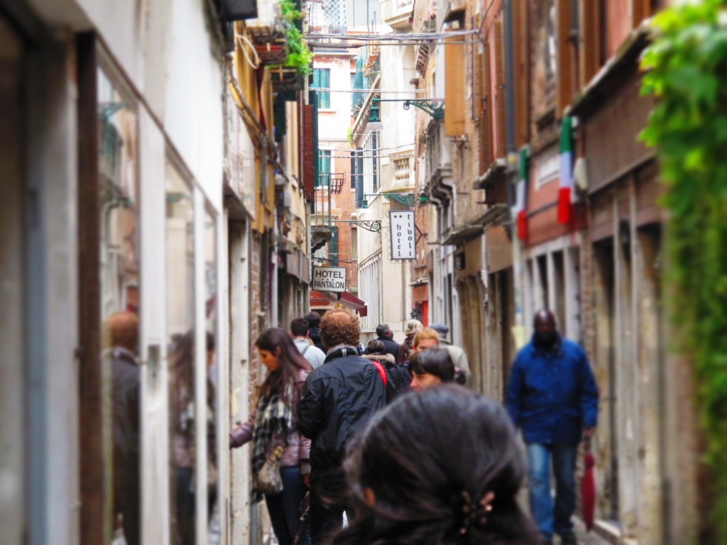Venedik'te gezmenin raconu kaybolarak gezmek. Evet, haritanın işe yaramadığı bir şehir burası, takip etmesi çok zor. "Rialto köprüsü", "San Marco meydanı" gibi belirgin yerler bazı sokaklarda oklar ile gösterilmiş. Okları takip ederek yolunuzu buluyorsunuz. Bir sokağa giriyorsunuz ıpıssız, bir başka sokağa bağlanıyorsunuz çok kalabalık.
