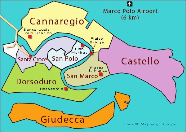 Şehrin en turistik yerleri San Polo ve San Marco bölgeleri. Rialto köprüsü ve San Marco meydanı da buralarda. Fakat… Venedik'te uzun zaman geçirmeyecekseniz ve özellikle trenle veya karayoluyla geldiyseniz otelinizi Santa Croce bölgesinde seçmenizi öneririm. Çünkü elinizde bavullarla daracık sokaklarda yürümek isteyeceğinizi sanmıyorum.