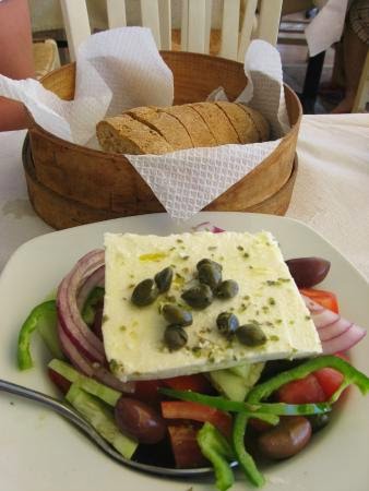 Greek salad tarifini vereyim de tam olsun: İri doğranmış domates, salatalık, kuru soğan, yeşil biber karıştırılıyor. Siyah zeytin ekleniyor. Kapari de koyarsanız çok daha lezzetli oluyor. Biraz kekik serpelim, sızma zeytinyağı, limon, ve üstüne tabi ki Feta peyniri.